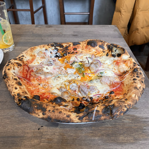 写真左は最初に提供されたマルゲリータです。全体的に焦げが多く、生地が薄いせいもありますが一部こげで欠損してました。 口に頬張るとこげの苦味が広がりなんとも不快な味、なんとか飲み込み部位を変えてもう一口食べてみましてがやはり旨みは全て苦味にかき消され人生で1番美味しくないピザだと感じました。 他の卓を見回すとそれほどこげてなかったので、勇気を振り絞って女性店員さんに『こちらのピザは普段からこのぐらいこげてるいるものですか?』と聞いたところ、すかさず『そうですね!これが普通でこげも旨みでウチはしっかり目にやらせて頂いてます!』 と強い口調で言われました。『お口に合いませんでしたか?』などはなくがっかりしましたが、私の味覚がおかしいのだと考え、手に持っていた2枚目食べ終えてから申し訳ないけどあとは残して店を出ようと考えてたら、ピザを焼いてた男性がこちらに来て焼き直しましょうか?と声をかけていただき、それが右の2枚目です。 2枚目は普通に美味しく頂きましま。 こげもほどほどで薄めの生地でもちもちして、チーズも美味しかったです。 焼き直しもして頂き感謝してますが、総合的に女性の接客が評価を下げてしまった要因です。せめて最後ぐらい笑顔を見せてほしかったです。 きっとうちの店は悪くない、イライラもしてないしキビキビ動いてただけ! 本格ピザの味がわからない客め! とか思っているのかもしれませんね。笑