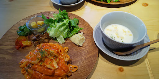 Read more13時台に二人連れでランチに行きました。 店の入り口を入ったところに焼き菓子やグッズを売るコーナーとレジがあります。レジのところでメニューを注文、先払い方式でした。ランチにマフィンセットを付けて1,700円弱。いい値段するなぁ。 レジにいた男性店員さんは、迷ってあれこれ聞いてみても笑顔で答えてくれて好印象。
