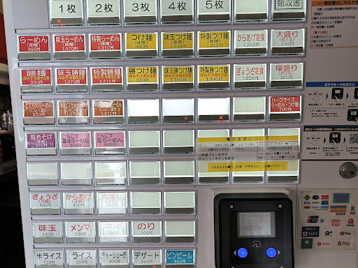 再訪問にて特製味噌ラーメン(1030円)いただきました🍜(写真下のほう) 駐車場は建物前に3台と裏に4台分あり案内図追加しました🙋 入口前の券売機で食券購入するスタイルで電子マネー使えるので便利😁