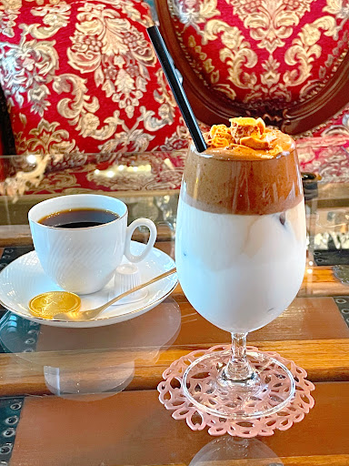たくさんあるメニューからダルゴナほうじ茶を おいしくいただきながら、休日のひとときを異空間でゆっくりのんびり過ごす...