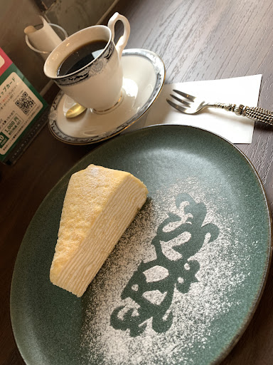 Read moreお昼過ぎ、14:00近くに1人で来店。 二階建て建物の1階部分には整骨院があります。大きい通り沿いにあり、見上げればお店の名前が見えます。 自転車で来店、特に駐輪場はありませんでしたので、店舗1階部分の2階に上がる扉前の脇に駐輪しました。 扉を開け、階段を登っていくとメルヘンチックな壁と店舗扉があり、扉を開けると絵画から飛び出したような素敵な椅子が目に入りました。 お店は混み合っていましたが、空いている席もあり、カウンター席のような横並びの席もあり、1人で利用しても引け目を感じませんでした。 実際1人でお店を利用してる方もたくさんいて、Wi-Fiもあるのでパソコン持ち込んでいる方もいました。 しかしながら、本当に混み合っている場合は席にも利用時間の制限があるようです。 昼食後に甘いものを食したく来店したので本日のケーキでドリンクセットでいただきました。 ちなみに本日ケーキは2種類あり、来店した日はミルクレープとフルーツのロールケーキでした。 ミルクレープとトラジャセピアのセットを注文しました。 周りを見渡すと美術館のようなクラシカルな雰囲気の調度品や家具が目に入り落ち着いた雰囲気でした。 女性同士の方が多く見受けられましたが、男性同士やカップルの方、それこそ幅広い年齢の方が利用して楽しんでその場を満喫しているように思われました。 トラジャセピアもとても美味しく、深煎りのコーヒーが後味に残り、大好きなミルクレープによく合い美味しく頂けました。 他のメニューもとても気になります。 次回はランチ...