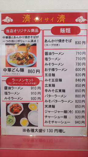 Read moreマップでラーメンを探していて、済済を見つけ来店。店の前横に全5台位の駐車スペースがあって停めやすい。店内は2つのテーブル席、右側にカウンター席、奥に2テーブルの小上がりがあって、結構多人数が入ることができるが、今回もお昼時で小上がりが満席、テーブル席も埋まり、カウンター席が数席の空きしかないほど客が入っていた。人気の店なのがわかる。今回は、「辛みそ広東麺」と「餃子」を注文。広東麺は普通醤油ベースの餡がかかっているのが普通だが、味噌味の餡がかかっており、非常に濃厚で美味しい味噌餡と感じた。中央に辛みそが載っており、食べ進めていく途中で溶かしながら味変も楽しめる。ピリ辛の餡に絡むのは細麺のちじれ麺で、非常に合うなと感じた。餃子も薄皮で中の具もジューシーでニンニクも効き、非常に美味しかった。今度は塩味の...