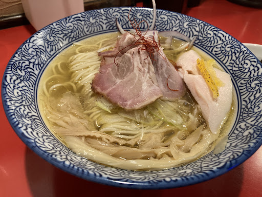 Read more完璧な冷たいラーメン。 自分は猫舌で、熱いものは早く食べられなくて居づらいので、混んでいるラーメン屋では食べないのですが、冷やし中華・冷たいラーメンは別。 こちらの冷たいラーメンは味は醤油と塩の2種類(券売機は共通で注文するときにに言う)、麺は冷麺の様にしゃっきりとしてコシのあるだけど、細麺だから嚙み切れないという事は無い。スープは鳥と煮干しの香ばしい匂いがして一口目から美味しい。入っている氷も出汁で作ってあって、スープが薄まらない工夫があって最後まで冷たくて美味しい。しっとりとした鳥チャーシューと、スライスした瑞々しい紫玉ねぎなど、冷たいスープと麺に合う具材。何というか、派手な味ではないけど上品で毎日食べても飽きない系の味かな。実際、夏以外もあればいいのにとのコメントもたびたび見かける。東京・千葉・北海道と結構食べ歩いたけど、冷たいラーメンではこちらに匹敵する店は無かった。(冷やし中華はまた別の話) 1年ぶりに食べたけど、思い出通りの完璧な味でした。半チャーハンや餃子と合わせるのもおすすめです。特に熱い餃子を食べてからの冷たいスープは最高。 お土産で油淋鶏(5個入り)も頼んで、家に帰って1つすぐに食べたけど、表面はパリッとして中はしっとり、タレも酸味と塩加減と甘さのバランスが素晴らしい味。写真だとマヨネーズが添えられていたのでちょっとだけつけて食べたら美味しかったです。餃子(じわっと美味しい肉汁が出てきます)もチャーハンも油淋鶏も並の中華屋では太刀打ちできないのでは? 昔よりお値段は上がっているけど、それはどこも同じ。どうせ使うなら本物にお金を使いたいものです。 上品な冷たいラーメンが好きな人は遠くからでも来てみて欲し...