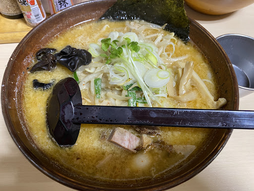 2023年10月利用 14時頃利用しましたが3組待ちが出ており満席でした 見た目は白味噌のような淡い色で薄味に感じますが、一口すすると濃い味噌と炒めた野菜の香ばしさとスープに溶け込んだひき肉の旨味と脂が見事に調和してパンチのきいた味が口いっぱいに広がります このスープが絶妙な茹で加減の縮れ麺にしっかり絡んで最後まで美味しくいただくことができました 無料のゆで卵を食べると舌がリセットされるので、一口目の美味しさを二口目も三口目も味わうことができます 座席はテーブル席3つ調理場側カウンター席5つ、駐車場側にもカウンター席が4席程ありました
