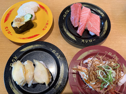 Read more私は、刺身が好きで、家でも、良く、買って来て、刺身の盛合せを、しますが、何年か前に、急に、生物が、苦手になり、食べれるのが、限られて、他の人と、お寿司を、食べる機会が、少なくなり😅ましたが、子供と、あっちゃこっちに、食べに行っても、卵の握り、いくら、甘エビ、茶碗蒸し、その位しか食べれなくてのはずが!スシローの寿司は何故か、もう少し、食べれるんです?確かに、握る人により、シャリから、ネタが、落ちていたり❗ばらばらに、割れていたり、どうでもいい‼️ただ乗ってるだけの寿司も、ありますが、他の所よりは、生臭身が、違います、すきずきで、気にしないで、食べる人も、居るかもしれません?が、一度、食べ比べて見てください、、(はま寿司は、口に入れた瞬間で生臭い)??(魚べいは、シャリが、美味しくないから、全体の寿司が、まずい😖(ーー;))それに、比べたら、まだ、100円で、食べれる寿司の中では、良いと思います、、、それより、1ヵ月前くらいに、スシローに、友達と、食べに行った時、近くに、座って食べていた、小学校上がる少し前の子供と父親と母親と、ばあちゃんと、4人で、食べに、来ていて、慣れてる感じで、流れて来た、寿司を取り食べていたと、思ったら、その次から、流れて来たのを、取り、少し置いて、指定の台の紫の上に、上手に、何回も、置いているのを、見て、皆が、笑って、そのまま、怒るわけでもなく、終いには、斜めになり、もし、紫の台の、頼んだお客さんなら、絶対に、怒って😒💢💢当然だと、思ってました、、...