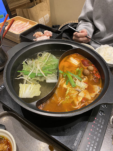 Read moreディナータイムだったので、 「牛&三元豚・寿司食べ放題」を注文。 お出汁は、白だし(基本)と6種類の中から1種を選択する方式です。 今回は「柚子塩ちゃんこだし」を選んでみました。 柚子の香りが効いて、タレなしでも十分美味しいです。 白だしは、タレBARから好みの味を選び、薬味も薬味BARに沢山あるので、色々な味を楽しむことが出来ます。