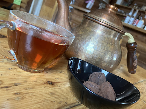 Inside, warm atmosphere; the owner is a very kind and likeable Turkish man.