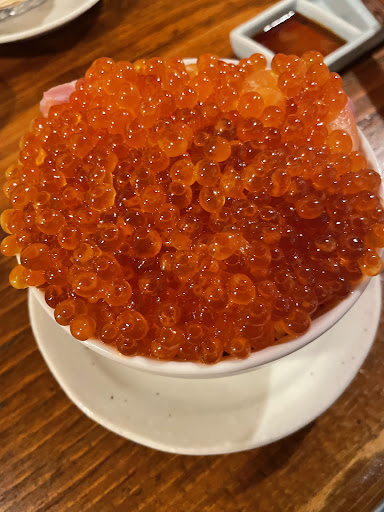 This place is a lot of show and with just a little substance. Be aware of what you're getting into when you go there. They make a big show of pouring the salmon roe into your bowl while the whole staff loudly chants in unison (that is if you order their signature ikura bowl). I think you can request to have not them do so but It feels awkward to say no. Some people are enthused by this but I found it overwhelming and unnecessary. Also expect that you won't have a lot of time to eat on a busy night since they limit the amount of time you can stay (unless you have a special reservation perhaps?). So if you wanted to eat the full course (which is probably the best deal) you won't be able to order during a busy period. The other frustrating thing was that even though you have a time limit for staying there, the service seemed incredibly slow. That having been said, I don't think this is on purpose or that they're not trying to provide good service. However, they just seemed ill-equipped to provide adequate service on a busy Friday night. Nonetheless, the food tasted decently enough. The price was a bit on high side and it seemed what you are paying for is the experience. Therefore, I can't give it a completely negative one star review but I really felt my time / money would have been better...