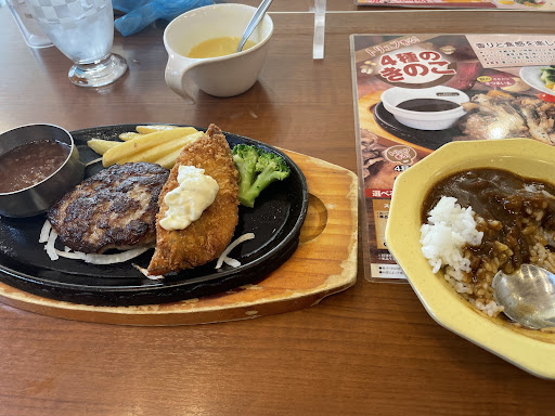 Read more賑やかな店内なので子連れも気兼ねせず入れます。子供にはおもちゃ(組み立てられるかわいい消しゴム)が一つもらえて、スタンプカードも貰えます。貯まった数でアイスやケーキなどデザートのサービスあり! サラダバー、ドリンクバー、スープバー、カレーバーがあり飽きずに楽しめます。サラダは種類が豊富で、カレーはライスが二種類選べます。2世代、3世代で利用されている方が多い印象です。シャトレーゼが近いので、お腹いっぱい食べたあとに帰りにアイスを買って帰ったりと幸せコンボが決められます。 注文がタッチパネルに変わりましたが、メニューブックをみて数字を打ち込むタイプです。人によっては難しいかも。しかもメニューブックはテーブルに一冊ずつなので、注文にもたつくのでせめて二冊...