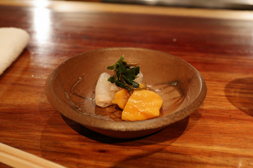 I really really wanted to love this place. We booked for their special uni omakase course that is only available for 2 months a year and was really looking forward to it. When we arrived we noticed that the restaurant is extremely extremely warm and we were sitting right in front of the area where theyโre cooking and multiple stoves were turned on. It was a hot summer day and we were sweating so much. For a Michelin restaurant this was really so disappointing. There was just a single fan at the back but it was blowing mainly at other guests and we eventually had to ask if there was something to be done about the heat but all they could do was direct the fan alittle more at us.