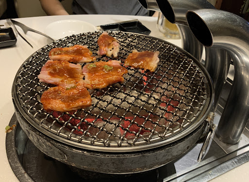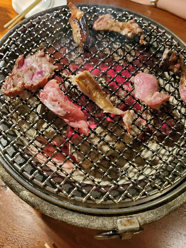 そして何より、、席備え付けの炭火コンロ、火力弱すぎませんか・・・・・・?強火全開の設定で、とろ火~弱中火までしか出ませんでした。