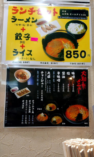 今日(10/5)、初めて来ました。タクシー運転手オススメのお店とのこと。 味噌ラーメン・ミニ豚丼セットを食べました。 味噌ラーメン、とても美味しい!少し甘めでこくのあるとても美味しい味噌スープ。ニンニクの感じ好きです。味も匂いも最高!麺もツルツルしててとても美味しい。それに、チャーシュー、メンマ、ネギ、ワカメと具だくさん。甘めのたれの豚丼も美味しい。 私は、食通ではないし、北海道に来て1年半だし、私が基準にはならないとは思いますが、本当に美味しい味噌ラーメンでした。いろんな食材や工夫で作り上げたもっと美味しい味噌ラーメンもあるでしょうが、私にとっては、この厚別大和軒が今までで一番です。毎日食べたくなる…。なんかそんな感じの美味しさでした。 ご主人と奥さま?でされているようですが、とてもステキなご夫婦という感じ。仕事への信念・誠実さが伝わってきました。 それにしても、¥590でこの味噌ラーメンが食べられるとは…。とても美味しいし具だくさんだし。正直、もう少し値上げしてもいいのでは?と思いました。こんなに素晴らしいラーメンをこんなに安く食べさせていただき少し申し訳なく思いました。 お店を出るときに、「とても美味しかったです。ありがとうございました。」と伝えました。 今度、また来ます。 (10/14)今日は、塩ラーメン...