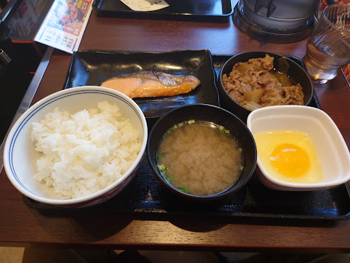牛丼並を頼んで待つこと10分! 先に牛鮭定食が出て来てびっくり