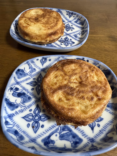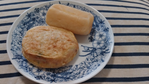 Read more昔長崎市の露天で食べたことがあり、良いアイデアの食べ物だなぁと思ってたのが、佐世保の早岐で売ってることをインスタで知り、ようやく帰省したのに合わせて買ってきました。 プレーンを食べましたが、美味しいですね! お腹も満たされますし、150円なのが助かります! 今やコンビニのおにぎりもそれ以上しますからね。 お家に持って帰って2分ほどオーブントースターで焼いてみましたが、表面がカリッとなり食感も増しました。