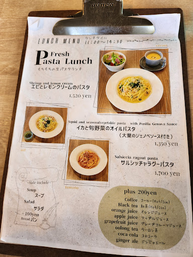 パスタはレモンクリーム味を頼みましたが、エビは冷凍?かな、小さい。そして、クリームはしゃばしゃばで物足りなさを感じました。これで1580円は高く感じました。
