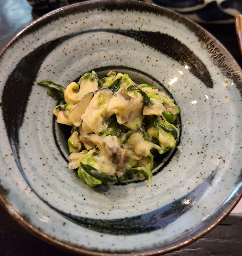 最初に出された小鉢も、赤貝と青菜を和えたものだそうですが、味付けが絶妙で気になる逸品!