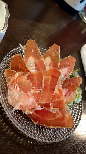 お刺身、炭火焼、牛タンステーキ、唐揚げなど、どれも美味しいです。ハモンセラーノの生ハムもあり!