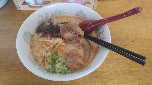 Read moreちょくちょく前を通る度に気になっていたのですが、遂に入店しました。😃 メニューは色々あり、夜は居酒屋もされているそうです。 歴史も古く、かれこれ35年になるそうです。 今回、江迎ならではのメニューを注文しました。😆その名も山ちゃんぽん‼️ 海鮮の代わりにキノコと猪肉が入っていました。😙 ベースは味噌ちゃんぽんだと思いますが、とてもコクがあり美味しかったです。ボリュームも存分にありました。 次回また違うメニューにもチャレンジしたくなりました。⤴️ ちなみに何故か焼き飯系だけは無いようでした。🤢 令和5年8月に再訪しました。😃 焼き飯がメニューにアップされていたので注文しました。油っぽく、味付けが甘口で私の口には合いませんでした。😱 他の方が注文されていた冷麺が気...