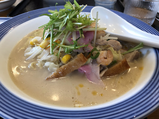 Read more久し振りにリンガーハットへ。 入口には手を下にかざすと温度計とアルコール噴射が同時に行われる機械があり便利。 ①嫁は牡蠣ちゃんぽんと高菜半炒飯。自分はバジル風味の~って記載が気になったけどスタンダードな野菜たっぷり皿うどんをDセット(半炒飯と餃子三個)で注文。一時来ない間に若干メニューが増えてるようでまた通いたくなりました。牡蠣チャンポンは牡蠣を豆乳クリームバターで焼き外は香ばしく中はとろっとした~と例えている通り非常に香ばしく味噌風味のスープともよく合い以前食べたときより美味しく感じました。高菜半炒飯も高菜の風味よく美味しいです。野菜たっぷり皿うどんは相変わらず野菜多めで満足の一品。一緒に頼んだ半炒飯と餃子も安定の味。また皿うどんと一緒にトレーに乗ってくるドレッシング(生姜・ゆず)で半分ほど食べてからの味変も楽しめます。私は三分の一そのまま、三分の一ドレッシング、残り三分の一は酢を掛けて味変を楽しんでます。次はバジル風味の彩り野菜ちゃんぽんを頼んでみたいですね。 ②60周年記念メニューで酸辣湯風味の彩りチャンポン 店員さんはよく気がつく方で気持ちよく利用できました。