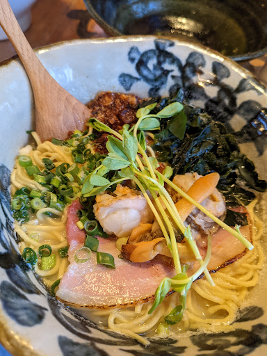 Read moreThis is a small ramen shop with very delicious ramen. First thing I really noticed was the handmade pottery bowls that they serve the ramen in. They're very classy looking and fun to eat ramen out of. Ramen is very delicious and it seems a little healthier than most ramen shops. There wasn't as much oil in the ramen. I also enjoyed the thing called "dunk rice" which is a little bowl of rice that you can add to the ramen soup after you finish the noodles. Made a nice way to finish the soup. The staff is also really friendly and there are English menus if...