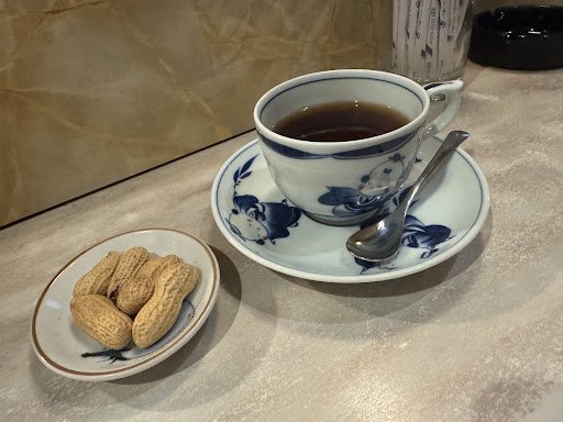 Read more佐世保にある老舗「山本コーヒー」に初めて訪れました。50年続くというその歴史に驚きつつ、アイスコーヒーを注文。香ばしい殻つきピーナッツが添えられていて、コーヒーの苦味をほどよく和らげてくれる絶妙な組み合わせに感動。マスターいわく、昔はコーヒーが胃に重いと感じる人が多く、ピーナッツを出したのが始まりとか。今も変わらずサービスで続けている姿勢が素敵です。レトロな雰囲気の店内には、ピーナッツの殻が床に落ちていて驚きましたが、掃除の際にはワックス効果があるそう。喫煙可能なカウンター席もあり、昔ながらの喫茶店らしさが残っています。佐世保バーガーやザクザク食感のミルクセーキなど、地元グルメも充実。奥のテーブル席には懐かしいゲームテーブルもあり、世代を問わず楽しめる一軒です。...