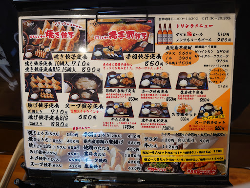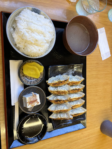 Read more5年ぶりぐらいに来てみました。 2人掛け椅子席が5つ?6つ?小上がりの4人がけ座卓が3つありました。 入口で食券購入でPayPay等は使えません。 持ち帰りも食券方式です。 焼く前の生も販売していました。 焼き餃子定食15個入りが890円。10個入りは710円。食券回収時にご飯の量を大中小から選べます。とても安くて美味しい餃子でしたが、私の好みを言うともう少しジューシーさがあったらなぁと思いました。味は良くても具が少しパサついてて残念。手羽餃子は油のせいかジューシーでした。次回は手羽餃子の定食にしたいと思います。