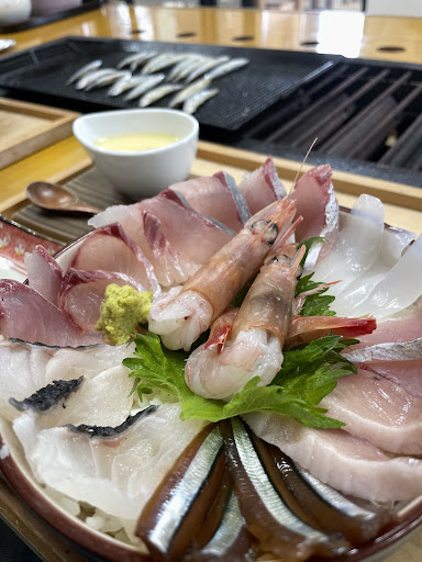 漁師直営の店で店内も広くてスタッフさんも明るく雰囲気の良い中で食事が進むことこの上なし。海鮮丼、海鮮BQも鮮度抜群でタカエビは刺身で食べてから頭を焼いて食べた。大きなカマまで出て来て3人でシェアしました。単品で頼んだけど、鶏のからあげもそこいらの唐揚げ屋さんよりもジューシで美味しかった。食も酒も進むね。ただ岩ガキのシーズンだったら更に楽しめたのにね残念。改めて思ったのだけれど、昼間に飲むビールが1番美味いと感じ...