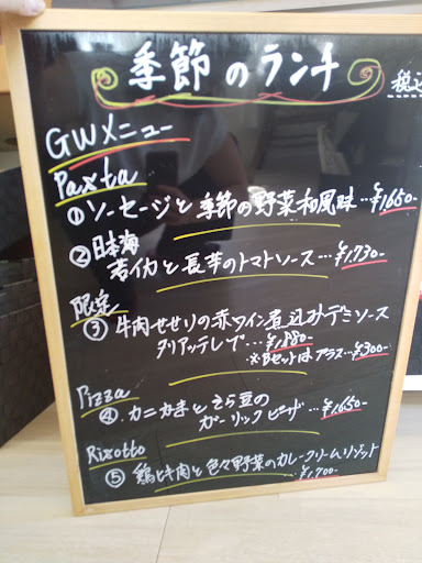 Read more小さな喫茶店です。駐車場が埋まっているので、予約してきたほうが良さそうです。前の通りは細い道ですが、みんな飛ばしています。混んでます。値段はそれなりにしますが、前菜がついてこの値段は安いと思います。ピザの下地はふっくらとしたパン生地です。イカスミパスタはニンニクの味が効いてました。もっちりとしたパンもついてきます。安定している感じのお店です。マスタ...