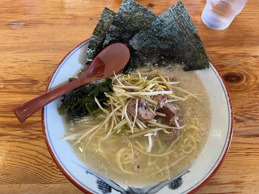 本日、サービスが10枚になったので、無料ラーメンをいただきました。 が!チャーシューが入っていませんでした。食べ進めている時に気づいたので何も言えず、そのまま完食。 サービスラーメンはチャーシューなしなんですかね??? 味もいつもより薄く、ふと見ると作り手の方がいつもと違う。同じ店舗なのに人によって味が変わる? 寂しい気持ちになりました。 先週に続き訪問。 休日出勤のときは、どうしても食べたくなる。 ネギラーメン、ネギ増し、大盛り、バリカタ。 今日は麺とネギを楽しむためチャーシューはやめてみた。 11:00前の早い時間だったので、5分ほどですぐに着丼。想像よりもネギ山盛り!せっかくのバリカタを失わないよう、ノンストップ5分で完食。 いやー、相変わらず美味かった!!!
