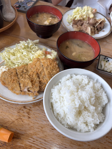 お肉屋さんということで、揚げ物には期待していたのですが、カツ定食のカツは衣が即はがれ、メンチカツは揚げ方があまいのか、衣と肉の間が、ぬちゃってしてる感じでした。 焼肉定食の味付けは良かったのですが、調理工程でお酒入れてるかな?アルコールの残った味がした気もします。。