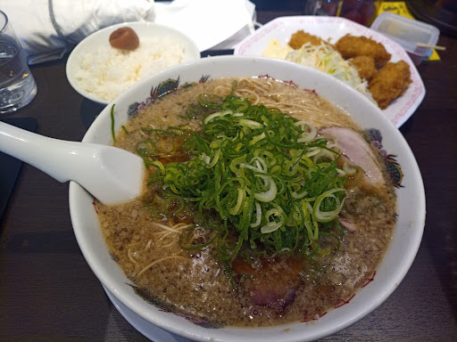 注文したのは「ラーメン(700円)+カキフライ定食(+330円)」。今回は細麺固め、麺大盛り、ネギ多め、一味なし、ほか普通で注文。 味はというと麺もスープも具も、ごく一般的なチェーン店という感じ。いわゆる万人受けするタイプ。売り文句は「濃厚背油と京都風醤油味のあっさり鶏ガラスープ」との事だが、塩味強めで塩辛いのが目立ったくらい。 驚いたのは麺とネギの量。おそらく麺は通常160g、大盛り320gのはず(今回大盛りにしたため、麺量だけなら二郎の300gより多い)。ネギは別途トッピング料とるくらい乗っていた。この2つの無料サービスは嬉しい。なお麺大盛り無料は、平日ランチのみの可能性大。(春日部店もこんな感じだった) カキフライは揚げたてでタルタルソース付き。美味しかったけど小ぶりで、冷凍ものだと思う。
