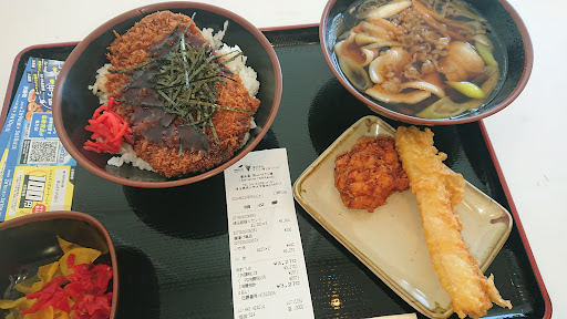 Read more数少ない圏央道のPA。 埼玉御当地のお土産を買い忘れてもこちらである程度は買えます。 朝から何も食べておらず正月の夕方前に馳せ参じました。 注文後、飯を配膳してもらったら会計。 ◯亀製麺と同じです。 うどんは品切れとの事で、わらじカツ丼を頂きました。 口コミ通り、予想通りの典型的なPA飯です。味が〜薄さが〜という愚痴は言えません。 「これぞPA飯」です! 本来、初期のわらじカツはこのくらいの厚みだったかもしれませんし、あの有名なビッグカツをわらじカツと思えばビッグカツの偉大さが分かります。 しかしここで良いポイントが、丸◯製麺の様に別皿で天麩羅等のトッピングが買えます! 本日初飯という事もありこの唐揚げがまた美味かったです。 唐揚げと卵天で飯を掻っ込む事が出来ました♪ わらじカツ丼大盛りを頼む方は一品追加をオススメします。米の攻略が中々難しいです。 この時期はあまり開いてる個人店が無いので、逆にこの時期に働いてて下さる従業員さん達に感謝しか...