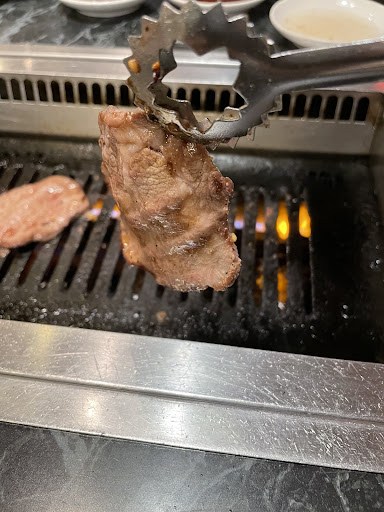 Read moreランチにお邪魔しました。 メインにごはん、スープ、サラダ、漬け物二品、コーヒーゼリー、そしてワンドリンクついて1000円前後という、大変リーズナブルでコスパの良いお店。 お店の方もてきぱきとされておられ、その仕事ぶりが小気味良い。 肝心の味については…なんですが、部位が違っても下味は同じなようで、食感の違いをこそは楽しめますが、味付けの好みについては一般的な焼き肉店と同じな感じです。際立った特長はなく、かといって冒険しているわけでない安心感。 味だけを基準にするならもう少し埋もれそうですが、あえてご紹介したいのはそのインテリア! 高度経済成長期からいくばくか、そんな時代が封じ込められたような昭和レトロな雰囲気ある内装! 布張りのようなあの独特なパターンの表された昭和な壁紙! 蜂蜜色、或いは琥珀色の光が降り注ぐ、あのステンドグラス照明! テーブルは緑青色の大理石、そして体を預ける革張りのソファー! いずれも年代物で歳月を重ねた、しかし決して古臭くなどない丁寧な使われ方をした調度に出せるあの雰囲気! 60ー70年代に流行ったBGM...