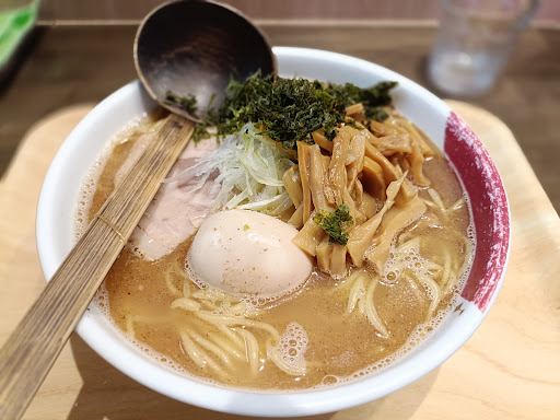 Read more2024年1月22日 初訪問 川越から移転オープンされて少し経ちましたが初訪問です。 駐車場は店舗前3台分と少し狭いですね。 11:10頃に到着で一番乗り、25分頃には中に入れてもらいました。 メニューは数種類、つけ麺や油そば、限定メニューもあるみたいです。 初めてなので、磯玉ラーメン800円と月、金は大盛り無料なので50円の大盛りをお願いしました。 今どき800円でラーメンが食べられるのは嬉しいですね!醤油ラーメンは650円でした。 すぐに着丼です。すごくシンプルなビジュアルです、岩のりがいい感じ。 スープから一口…、美味しい!コッテリしすぎず、魚介の旨味も感じられます。 麺は九州ラーメンにあるような丸みのあるパッツン系の麺です。 大盛りにしないと少なめかな? 具材はチャーシュー半分1枚とメンマ、味玉、ネギ、岩のりと多くはないのですが、800円の値段設定を考えると妥当だと思います。 次は油そば、つけ麺も食べてみたいで...