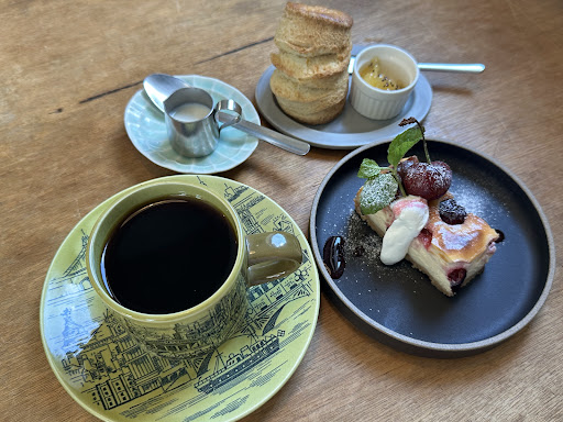 メニュー表から気になったチーズケーキ、写真がないので聞いてみたところメチャメチャ美味しそうだったので、大好きなコーヒーと併せて注文・後どうしても気になったスコーンも頂きました。