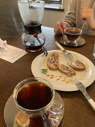 スーパーベルクで買い物した後、珈琲でも飲んで一服したいと思い、カフェを探すと目の前にあるじゃないですか。早速、道路を渡って探すが一向に見当たらない。あれ?と思ってもう一度確認すると、民家の入口に店の看板が!なんと2階に店がありました。 急階段を登り、恐る恐る近づき、部屋の中を覗くと、一人先客がランチしていて、席が1つ空いている。勇気を出して入っていくと、さっそく珈琲のいい香り。お店の方にやさしく迎入れていただきました。 まず最初にビックリしたのは、席が二組分しかないこと。2名×2=4名分です。運がよくないと入れません。 メニューを見ると、日替わりっぽいプレートランチと飲み物、スイーツ、プリンなどがあったので、珈琲とシュトーレンを頼みました。師走の気分満載です。メニューのものはほとんど自家製に感じましたが、どれも美味くてコスパもよいと思います。お店で出てきたシュトーレンはハーフサイズとのことですが、フルサイズのものをテイクアウトできるようでした。珈琲も器もこだわりがあり、ご夫婦でやられているせいか、アットホームなお店でした。あんまり混雑して欲しくないので、紹介もためらいましたが、長続きしていただきたいので、投稿しました。子連れ向きではないし、喫煙者も難しいと思いますが、一人か二人で珈琲でひと息入...