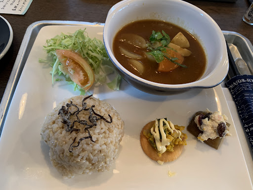 普段、ホットコーヒー派ですが、アイスコーヒーをいただきました。美味しかったです! ランチは、ドリンク付で税込¥1300でした。 お野菜中心、玄米ご飯、身体に優しいランチをいただきました。日替わり?なのでしょうか。