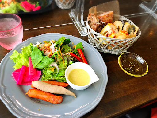 たまにはお腹の赤ちゃんの為にも健康的な食事がしたいと思い選びましたが、たっぷりサラダに ふかふかあったかのパンの盛り合わせはどのお店で食べたパンよりも一番美味しくて、忘れられません。主人は好物のキッシュセットにパンの盛り合わせを頼んでいましたが、キッシュもツナとほうれん草が入っていてとても美味しかったそうです。 ただ、男性にはキッシュセットのみだと量が少なかったようでパンの盛り合わせをつけて良かったと言っていました。笑