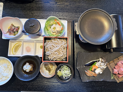お肉が柔らかくて美味しかったです。 自分で焼くスタイルですが、お肉自体の甘さがダイレクトに伝わり、口に入れた途端に溶けて無くなる... そんな感じでした。 焼きながら食べるって何か良いですよね^ ^ 蕎麦かうどんで迷いましたが、前日にウドンを食べていたので蕎麦をチョイス。コシがあって喉越しが良く美味しく頂きました。