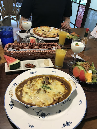 ピザを食べたのですが、すごく美味しかったです!!でも、カレーは少し辛かったので、お子さまにはピザなどをおすすめします! ですが、少し言いたいことが、、。 11時にオープンとかいてあったので、12時半ごろに行かせていただいたのですが、その時点で「オリジナルカレーしかございません」と言われました。あ、そうなんだと思ったのですが、閉店時間は3時だったので、少し疑問に思いました。その後ピザもいけると言われたので、頼ませていただきました。食べていると、隣の席にお客さんが来られたのですが、その方は普通にメニューを見て選んで、すごく美味しいと書いてあった焼きカレーを頼んでおられました。で、そのときには正直「は??」ってなりました。私のときにはオリジナルカレーとピザだけだと言われたのに、しかも後から入ってこられたお客さんが、私のときにはなかったメニューを頼めるのか少し意味がわかりませんでした。 お会計の時も、店員さんが、仲のいいお客さんであろう方としゃべっておられて、「誰かーお願いします」と別の店員さんが言っていたのにも関わらず、その店員さんはしゃべってばっかりで、「動けよ」と思いました。 ご飯は美味しいのに正直接客は最悪でした。