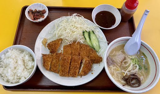 Read more同じ山小屋ラーメンでも日野店とは定食メニューは幅広いようで俺の定食なる組合せ定食もあり。 ①豚トロとのどっちのお肉派というポップに興味が引かれ太肉旨トロチャーシュー麺をチョイス。具材はモヤシにキクラゲと刻みネギに大振りのチャーシュー三枚。結構甘めのチャーシューは程よい肉質も楽しめて脂は舌の上で溶けていく感じで非常に美味しいです。砦のチャーシューのようにホロホロとほどけていくようなのもいいですが、肉って主張を感じられるこちらのチャーシューも大好きです。スープは割とあっさりで味付けもチャーシューの味付けと丁度いい感じ。モヤシが思いの外多くて野菜食べてる感じもあり満足の一杯でした。 ②よくばりラーメンと半焼き飯ギョーザのセットを注文。具材はチャーシューは4枚乗っていてもやしとキクラゲ、半熟卵半割りに刻み葱。ちょっとさっぱりした感じでスープはちょうど良い感じ。ギョーザは皮がモチモチ食感で噛むと肉汁が溢れだしジューシーで美味しいです。