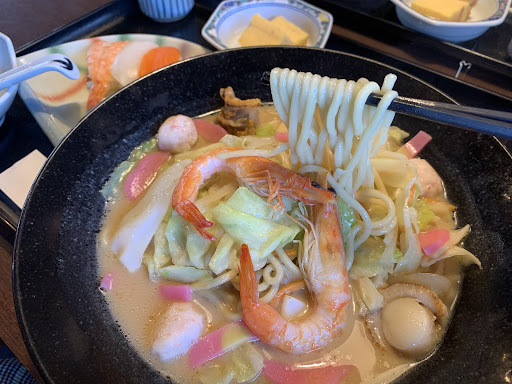 いつもたいてい頼むのはミニ丼とうどんのセット。このステーキ丼のステーキが味わいよく柔らかいのがお気に入りで、出汁の効いたうどんが程よくアクセントとなって、大満足のセットです。 そしてまたお気に入りなのが海鮮ちゃんぽん。豚骨スープに海鮮のコクが加わってものすごく味わい深いスープに、小麦の旨味がぎゅっと詰まったちゃんぽん麺が絡んできます。