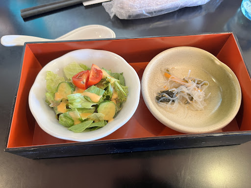 Read moreラーメンランチBと中華お粥ランチAと赤チャーハン(キムチ)と黒酢酢豚を注文。注文してから10分位でメインは来た、黒酢酢豚が5分遅れで到着、本格的な中華料理って感じ味付けはそんなに濃くない、チャーハンは美味しいけどパラパラ系ではなく水分多めでベチャッとしてる。駐車場は8台くらいは止めれそう、席4人テーブルが4つとカウンターが4席位。ちょっと値段高めだ...