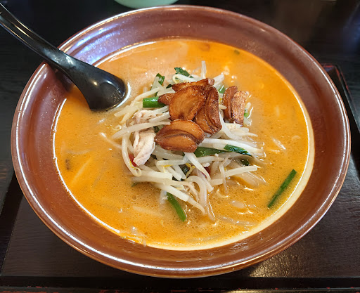Read moreこちらは地元でまだお邪魔してませんでした。ベトコンの禁断症状が出始めてましたので早速訪問。 12時台に着きましたが駐車場がいっぱいでちょい待ちアリ。回転が良いみたいで5分くらいで停められました。店内には券売機はなく店員さんに注文のシステム。味噌ベトコンらーめん(930円)をお願いしました。 どうしても他店さんと比較していまいますが、野菜とニンニク共に量が少ないかな…。ゴロゴロとしたカタマリのニンニクではなくスライスして揚げてあるものになります。その分コスパは良いと思います。 味はベトコン入門編としては良い感じでマイルド。ガツンとはきませんが万人受けしそうです。 ラーメンがメインのお店ですが、他のメニューも多数ありお客さんはご家族で来店される方が多いです...
