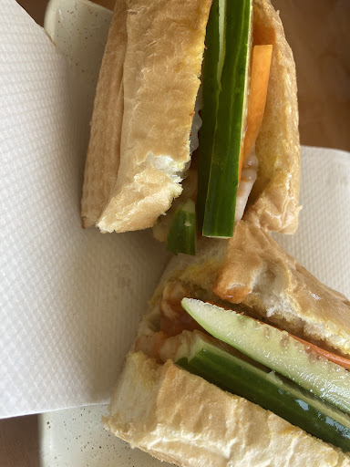 バインミー ……日本でも大人気! ハムやパテ、なます、パクチーなどを挟んだボリュームのあるベトナムのサンドイッチです。絶妙なハーモニー。