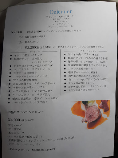Read moreHPにはランチの予約の有無は書いてなかったため、直接行かせてもらいました。予約なしでも席を用意してもらえるとのことだったために、少し待ってから席に案内されましたが、用意された席はケーキ屋さんのカフェの方でした。それでもきれいに用意していただいたので、メニューを見て頼もうとしたのですが、そのときに対応した店員さん?の態度があまりに不愉快でした。「今は予約でいっぱいだからあなた達は遅くなる。」そういったことを言われ、人を呼ぶための呼び鈴などもないでしょうか?と確認しても「予約が優先だからその後に順に聞きにくる。フランス料理なんだからしょうがない。」手がいっぱいなんだから予約のないあなたたちにはかまっていられない。そう言った言葉をひたすら言われました。 そんなに予約を優先するなら最初から予約だけでの対応にした方が良いと思います。