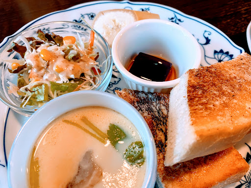 Read more地元ですぐ近くにあるんですが、初めてお邪魔しました。 シックで居心地良い空間と、美味しいコーヒー、おしゃれな食器、そして超豪華なモーニングが付きます。 トーストは、小倉・ジャム・シナモン・バターから選べるので、あんことかシナモンが苦手な自分にはとても嬉しい。 茶碗蒸しもすごく美味しく、子供も喜んでいました😃