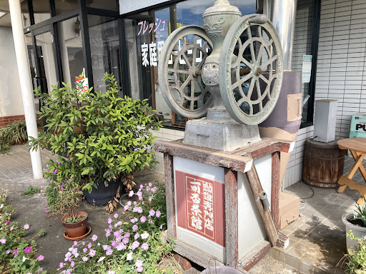 珈琲好きの心が掴まれるお店。 自家焙煎店の看板。ミルの置き物。外観から既に好きです。