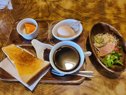 Read more不破郡垂井町関ヶ原今須3124 喫茶店 奴笠さん 駐車場🅿20台 営業時間 7時~17時 モーニングタイムは7時~11時 モーニングは6種 ドリンク代のみ、+50円サラダモーニング、+100円和風モーニング 、+150円和風モーニング、+200円スペシャルモーニングAセット. +300円スペシャルモーニングBセット 店内は…かなり年期の入った昭和喫茶店!!四人掛けテーブルが12セット、奥にお座敷かな?広い部屋がありました! シートが破れてるのは?お約束かな? 自分は…ドリンク代のみモーニングをアイス珈琲で注文! 2分程で提供されたモーニングは、アイス珈琲、バタートースト、付け合せ小倉、カットバナナ、ゆで卵 と〜シンプルなモーニング!!!! ドリンク代450円 可もなく不可もなし!! あ!!!ちょい…トイレが……古臭くて、…あまり綺麗でわ無かったのが問題かな?男女同室のトイレも珍しいよね…… 昭和ノスタルジーを感じたい...