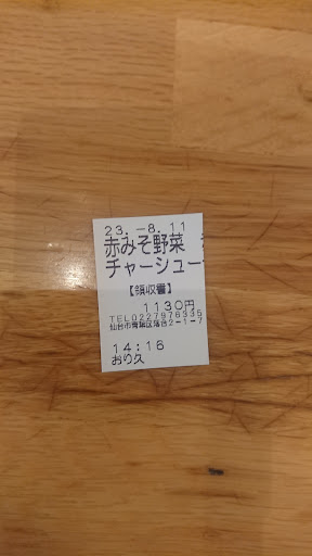 9/14 1ヶ月ぶりの再麺!PPゲット!赤味噌野菜チャーシュー¥1.130!トッピングに赤玉の少¥50!麺硬め!味濃いめ!14分位で着ドン!今日のチャーシューは、五枚中、五枚共にモモ肉100%!(バラ肉が0なのは珍しい…)しかし、更に珍しく柔らかい!まずは、スープ! 今日は、酸味も少なく美味しい!前回の店長とは違い眼鏡の若い方が 担当!麺は中硬めって感じ!もう少し硬めが良いな!途中から赤玉をレンゲの中で溶かし!麺を啜る!旨辛 でこくがスープに混ざる!何をブレンドしているか知りたい…やっぱり今日もスープまで完飲してしまいました…うーん高血圧なので控え様と毎回思うのだが…